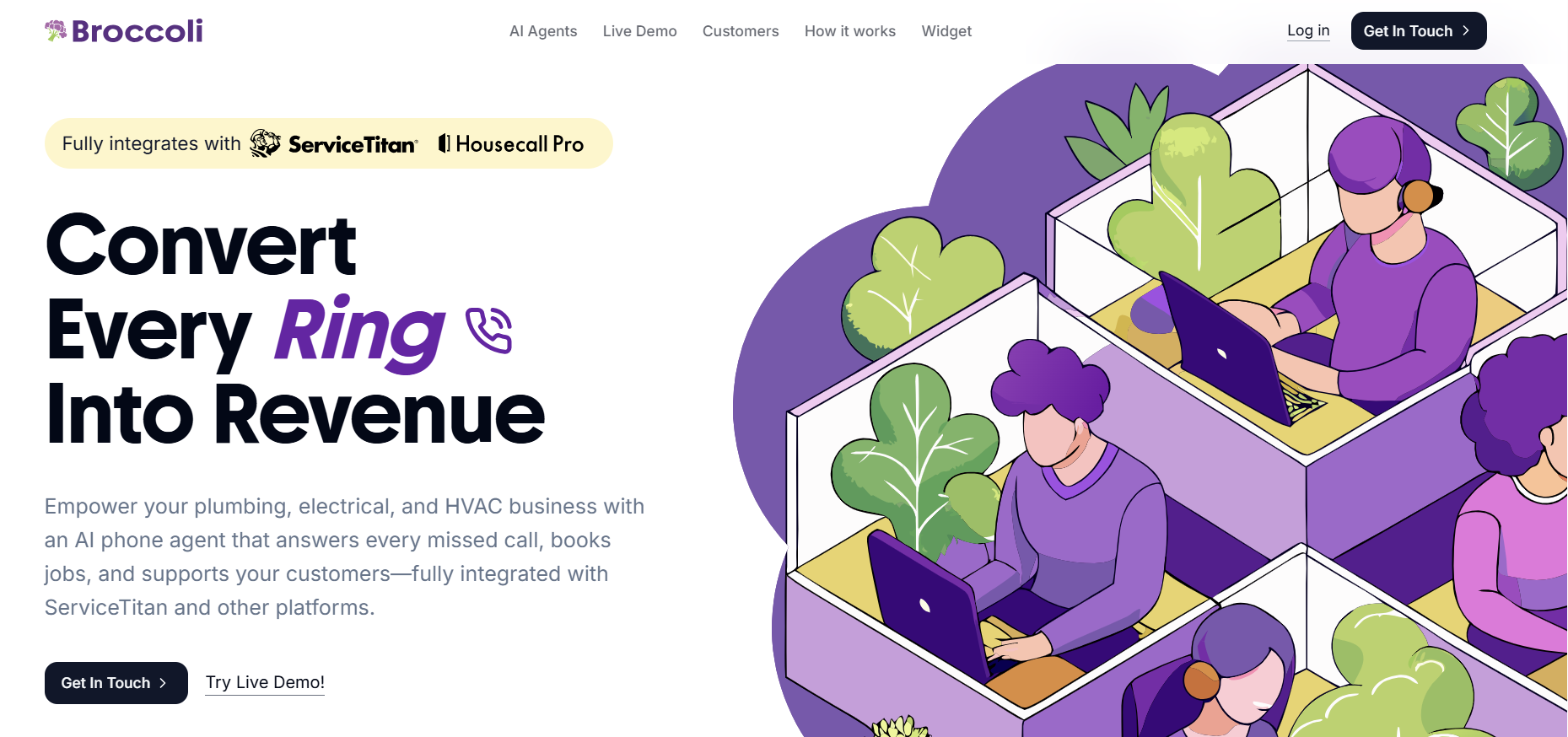 Broccoli is an AI-powered voice agent platform designed specifically for plumbing, electrical, and HVAC businesses. Its intelligent voice assistants answer customer calls, schedule appointments, and integrate with popular industry CRMs like ServiceTitan to streamline operations and boost efficiency. By automating front-line communication, Broccoli helps service providers capture more leads, increase booking rates, and respond to customers faster, resulting in improved customer satisfaction and higher revenue.