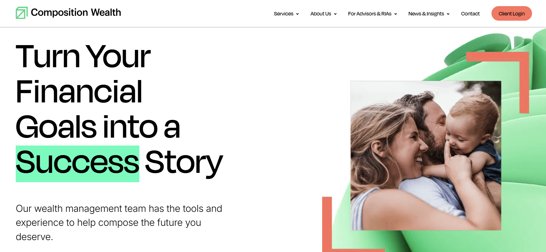 Every one of our clients has their own story. We chose Composition Wealth because it reflects what we do best; we take a holistic view of our clients’ assets, goals, and financial situation to create a personalized investment plan to help them succeed. And now as a collection of advisors and specialists across the country, our new name fits perfectly with how we serve clients. This resonates with advisors who share our client service philosophy and is why accomplished professionals continue to join us.