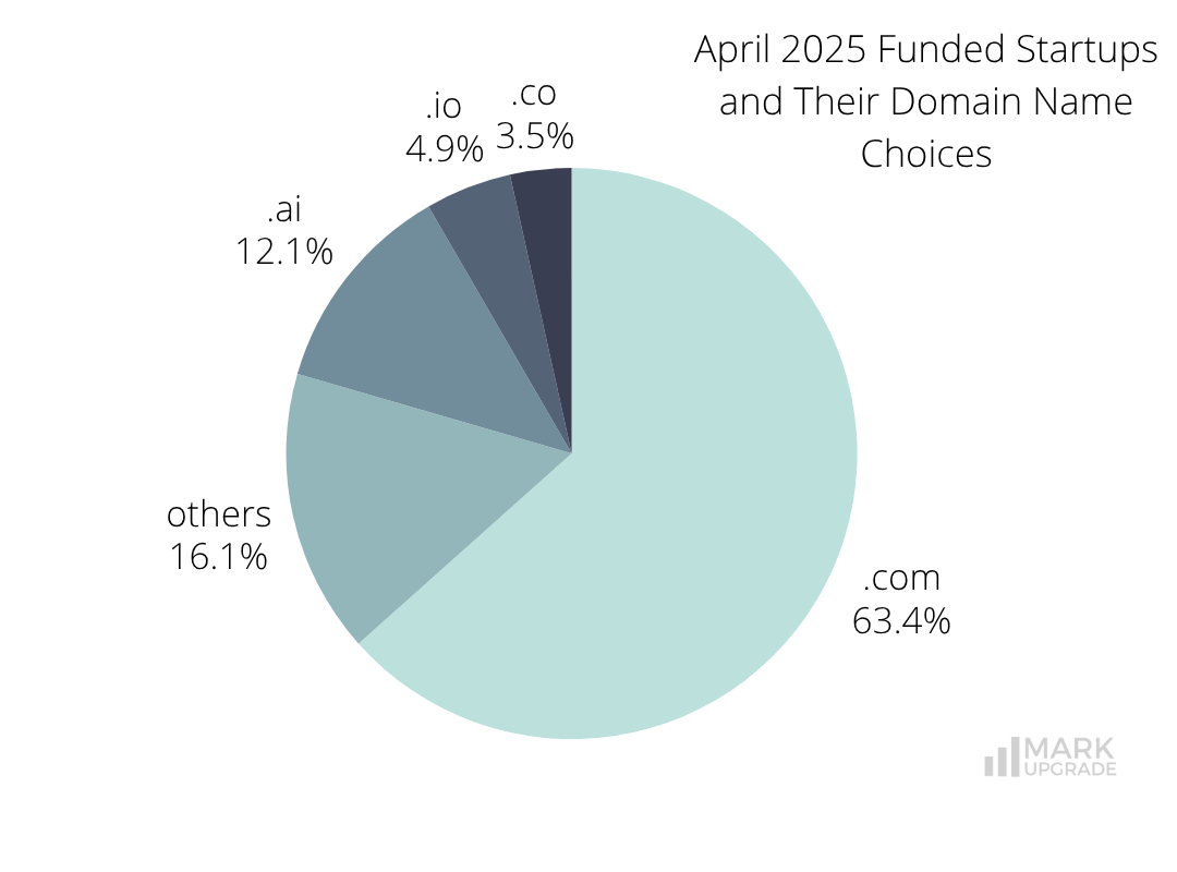 Among the 634 companies tracked in April, .com continues to dominate, with 402 companies (63%) choosing it as their primary domain extension. Its widespread familiarity and proven reliability make it the first place customers instinctively go when looking for a business online. As detailed in SmartBrandingโs .com case study, .com remains unmatched in longevity and global acceptance.