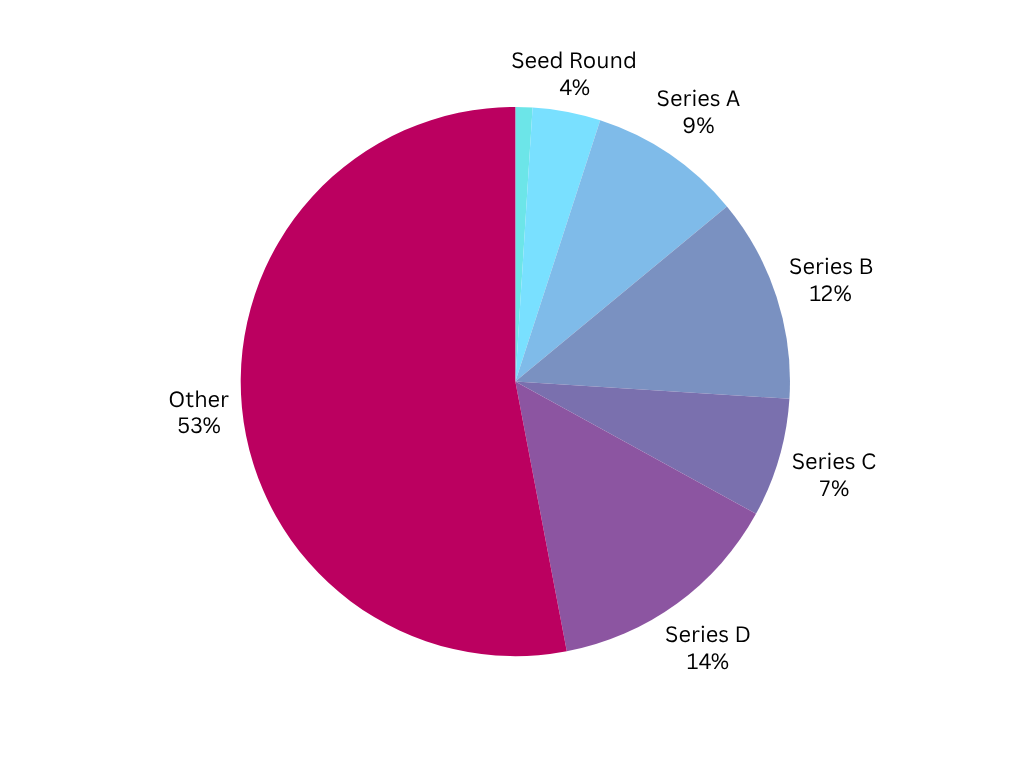Series E, however, saw a sharp decline, plummeting from $4.44B (11 deals) to just $126M (2 deals), a return to typical levels following the huge rounds from firms like Anthropic in March.