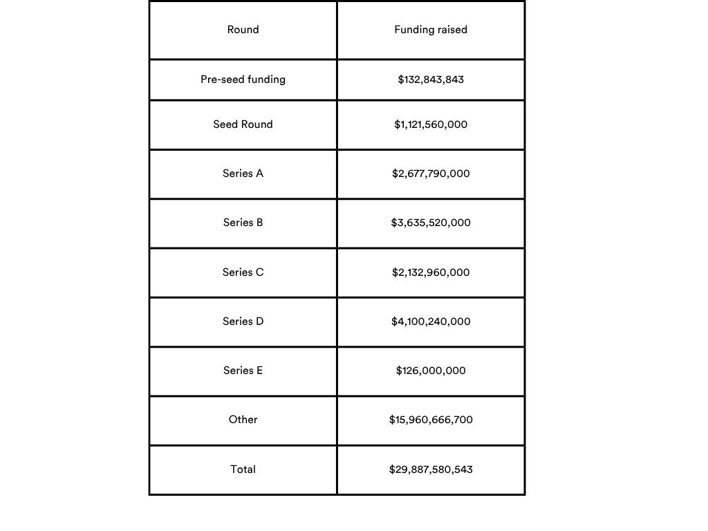 | Pre-seed funding | 115,679,149 | 58 | 132,843,843 | 62 |