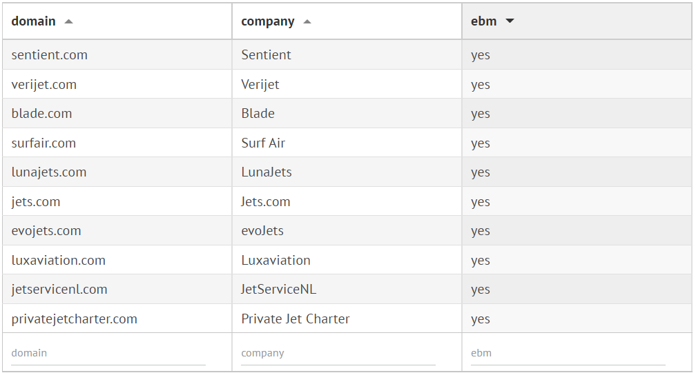 Private jet companies understand the importance of having a strong online presence in today’s digital age. One way to ensure that a business is easily found online is by investing in an exact brand match .com domain name. A total of 34 companies on our list have made this investment.