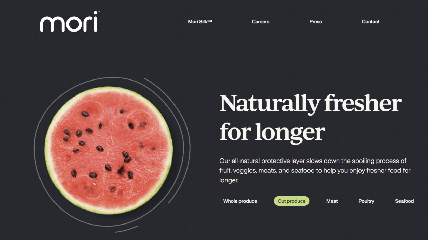 Mori is a foodtech company that uses natural silk protein to create an edible, invisible coating that extends the shelf life of perishable foods by up to two times. Originally launched as Cambridge Crops, the company rebranded to Mori in 2020 to better reflect the breadth of the technology core to its mission. The new name, Mori, is derived from Bombyx mori, the domestic silk moth that delivers the natural silk protein used in the company’s protective food technology.