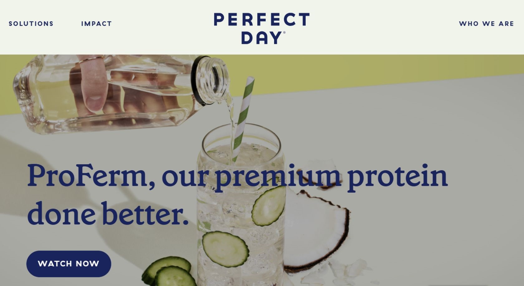 Perfect Day produces animal-free whey protein from microflora to make dairy that’s identical to traditional milk. Founded in 2014 under the name Muufri, the company rebranded to Perfect Day in 2016, taking inspiration from the Lou Reed song of the same name.